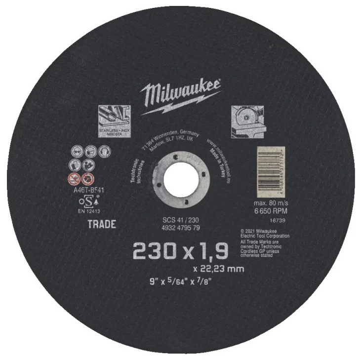 Інформація про продукт "Диск відрізний по металу Milwaukee SCS 41/230х1.9 (4932479579)"
