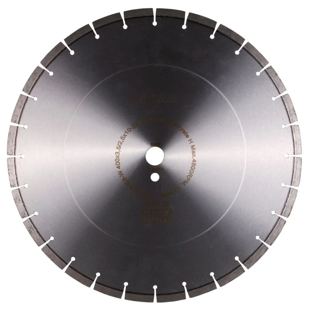 Диск діаметром 400 мм з посадочним отвором 25.4 мм (F4) призначений для використання з бензорезами потужністю до 12 кВт. Це рішення для професійних будівельних бригад, які виконують роботи з бетоном на ранніх стадіях його твердіння, коли важлива швидкість та чистота пропилу.