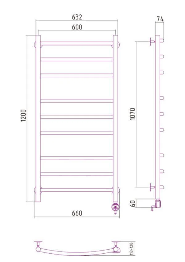 Електричний полотенцесушик виконаний з нержавіючої сталі та оснащений потужним нагрівальним елементом потужністю 300 Вт, що забезпечує швидкий і рівномірний прогрів усієї конструкції. Класичне розташування перемичок забезпечує зручне розвішування рушників різного розміру, а телескопічні кронштейни дозволяють регулювати відстань приладу від стени для оптимального розміщення в просторі.