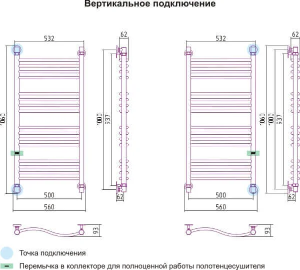 Рушникосушка Флюїд з розмірами 560х1030 мм є функціональним елементом інтер'єру, який одночасно виконує утилітарну функцію сушіння та сприяє підтриманню комфортного мікроклімату в приміщенні.