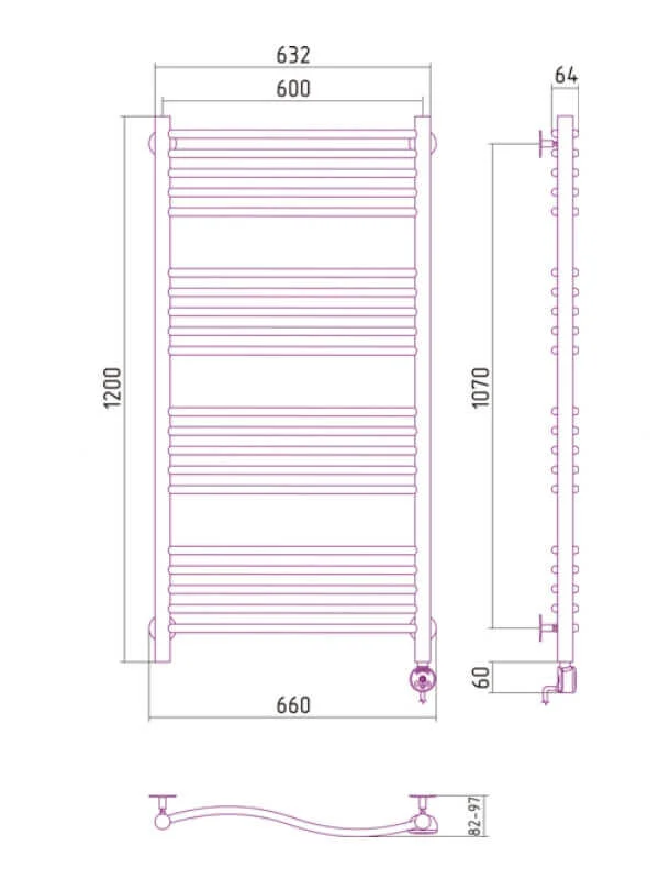 Ця модель з габаритами 600x1200 мм призначена для встановлення в житлових приміщеннях як функціональний елемент інтер'єру. Вона підходить для підтримання комфортного мікроклімату в ванній кімнаті та швидкого просушування рушників.