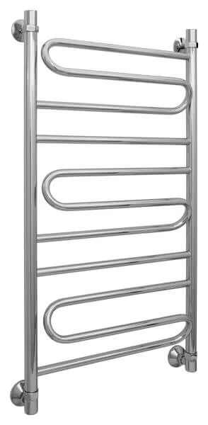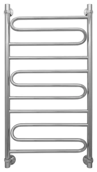 Водяна сушка для рушників виконана з полірованої нержавіючої сталі. Конструкція моделі «Елегія» має S-подібні вертикальні елементи з нахилом, що дозволяє розміщувати рушники в різних площинах для більш ефективного просушування. Підключення здійснюється через нижні патрубки з міжосьовою відстанню 500 мм.