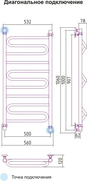 Сушка для рушників з габаритами 560x1030 мм та різьбленням 1/2" призначена для встановлення в системах центрального або автономного водяного опалення ванних кімнат. Міцна конструкція та гарантія 3 роки роблять її рішенням для тривалого використання.