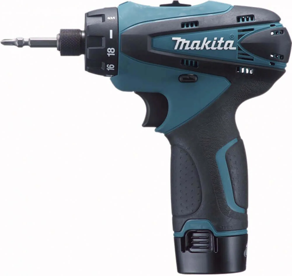 Акумуляторний дриль-шуруповерт Makita DF030DWE є компактним та легким інструментом, що працює від 10.8 В Li-ion акумулятора ємністю 1.3 А/год. Оснащений двошвидкісним редуктором з металевими шестернями, він забезпечує ефективне свердління та закручування кріплень. Електронне регулювання кількості обертів дозволяє досягти високої точності в роботі, а максимальна швидкість обертання становить 1300 об/хв.