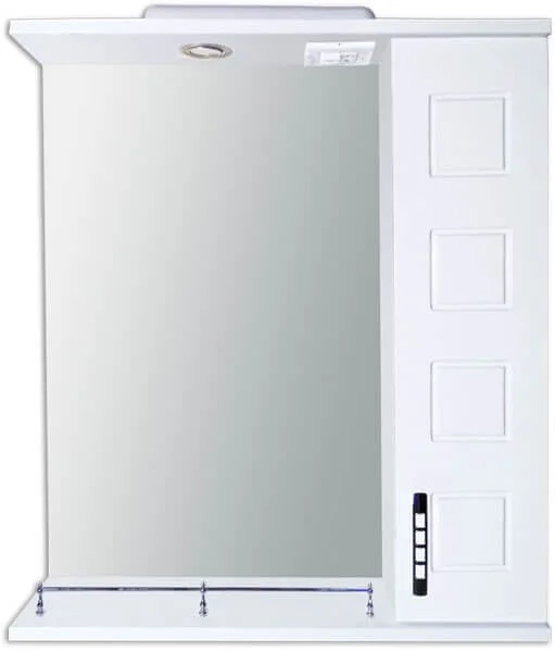 Дзеркало Аквазис Корфу 55 (праве) призначене для комплектації ванних кімнат і санвузлів. Воно оптимально підходить для обмежених просторів завдяки комбінації дзеркальної поверхні, системи зберігання та освітлення. Модель з правостороннім розташуванням шкафчика дозволяє ефективно організувати простір з урахуванням планування приміщення.
