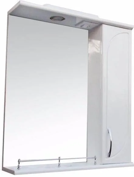 Дзеркало з шкафчиком Аквазис Никос 50 має вбудоване освітлення та зручну полицю, що розширює його функціональність у ванній кімнаті. Корпус та фасад виготовлені з вологостійкого ДСП та МДФ товщиною 16 мм, покритого високоглянцевою емаллю, що забезпечує стійкість до пари та конденсату.