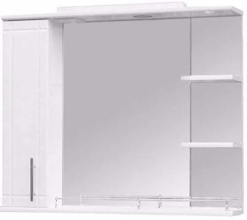 Настінне дзеркало з шкафчиком забезпечує функції відображення та зберігання в одному виробі. Конструкція оснащена світлодіодним освітленням та містить внутрішню полицю. Корпус та фасад виготовлені з вологостійких матеріалів: ДСП та МДФ Kronospan товщиною 16 мм відповідно, покриті високоглянцевою емаллю Sayerlack для захисту від вологи.