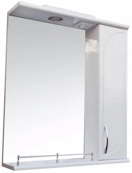 Дзеркало-шафа Аквазис Аріал Рондо 65 (праве) призначене для організації та зберігання косметики та побутової хімії в ванних кімнатах та санвузлах. Прямокутна форма та білий колір роблять його універсальним рішенням для різних інтер'єрів, а наявність освітлення та відкритих полиць підвищує практичність у щоденному використанні.