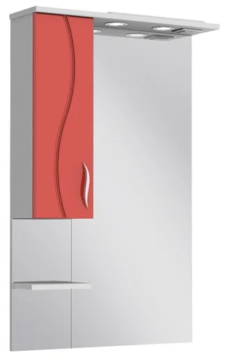 Дзеркало з полицею та підсвіткою Ювента Бриз БШНЗ2-65 червоного кольору (ліве) призначене для встановлення у ванних кімнатах. Воно забезпечує функціональне освітлення та допомагає підтримувати порядок біля умивальної зони.