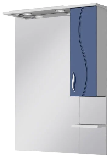 Дзеркало з підсвіткою та полицею має прямокутну форму та виконане в темно-блакитному кольорі. Конструкція передбачає правостороннє розташування освітлення та зберігального відділення. Корпус виготовлений з ламінованої ДСП товщиною 16 мм класу емісії Е1, а бокові частини покриті двошаровою високоглянцевою емаллю ультрафіолетового твердіння.