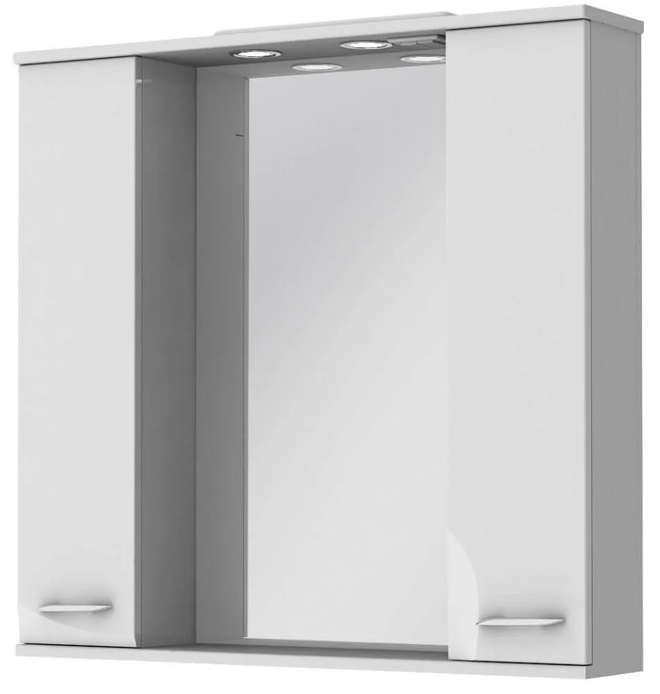 Основа та боковини шаф виготовлені з ламінованого ДСП товщиною 16 мм, а фасадні частини, верхня та нижня панелі — з одностороннього ламінованого МДФ товщиною 16 мм. Поверхня меблів покрита високоглянцевою емаллю білого кольору, що спрощує догляд. Модель оснащена двома галогенними світильниками з вимикачем та розеткою, що забезпечує комфортне освітлення без необхідності окремої підводки.