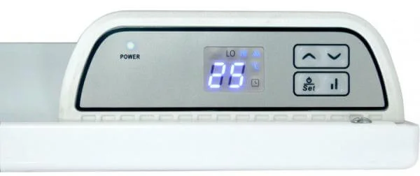 Конвектор має електронний термостат, що дозволяє встановлювати температуру в діапазоні від 8 до 35 градусів Цельсія. Вбудований термостат автоматично вмикає або вимикає прилад для підтримки заданої температури. Управління здійснюється за допомогою електронного блоку та цифрового LED дисплея. Також передбачений 24-годинний таймер для програмування автоматичного вимкнення. Корпус виготовлений з металу та покритий термостійкою фарбою білого кольору.