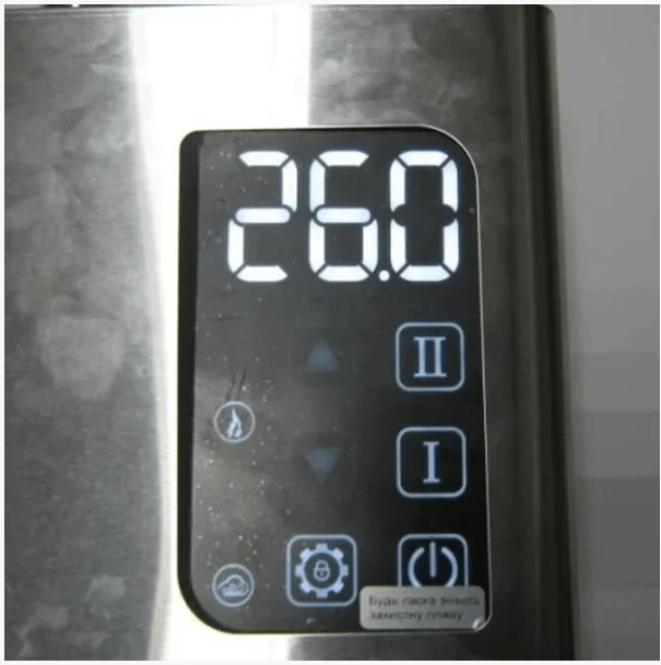 Керування пристроєм здійснюється за допомогою інтуїтивно зрозумілого сенсорного дисплея, розташованого на передній панелі, який забезпечує чітке відображення поточної температури та легке налаштування параметрів. Користувач може обирати між двома режимами контролю температури: за температурою теплоносія в діапазоні від 30 до 80°C або за температурою повітря в приміщенні від 10 до 40°C. Система також зберігає всі встановлені налаштування навіть у разі відключення електроенергії, що підвищує зручність експлуатації.