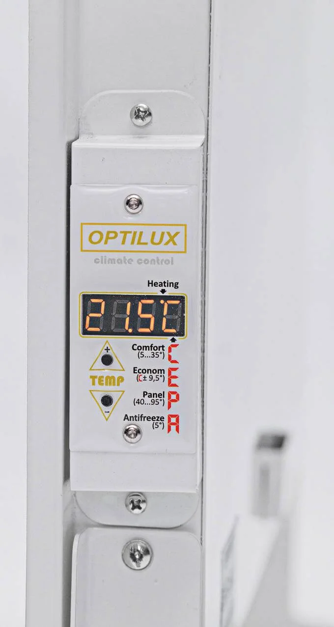 Ця опалювальна панель оснащена вбудованим електронним терморегулятором з функцією програматора, що дозволяє точно контролювати як температуру повітря в приміщенні, так і температуру поверхні самого обігрівача. Це дає можливість створити автономну систему опалення, де користувач може задавати бажану температуру для кожної кімнати індивідуально. Панель має потужність 0.7 кВт та призначена для опалення площі до 15 м².