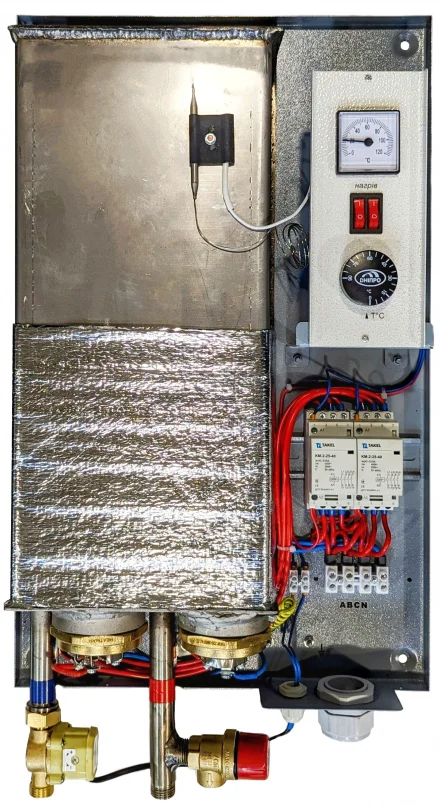 Конструкційно водонагрівач виконаний у вигляді сталевого корпусу, всередині якого розміщено бак з трьома ТЕНами з високоякісної нержавіючої сталі. Пристрій оснащений реле протоку, яке автоматично відключає ТЕНи за відсутності води, запобігаючи перегріву. Також передбачено автоматичне відключення ТЕНів при перевищенні гранично допустимої температури на виході, що підвищує безпеку експлуатації.
