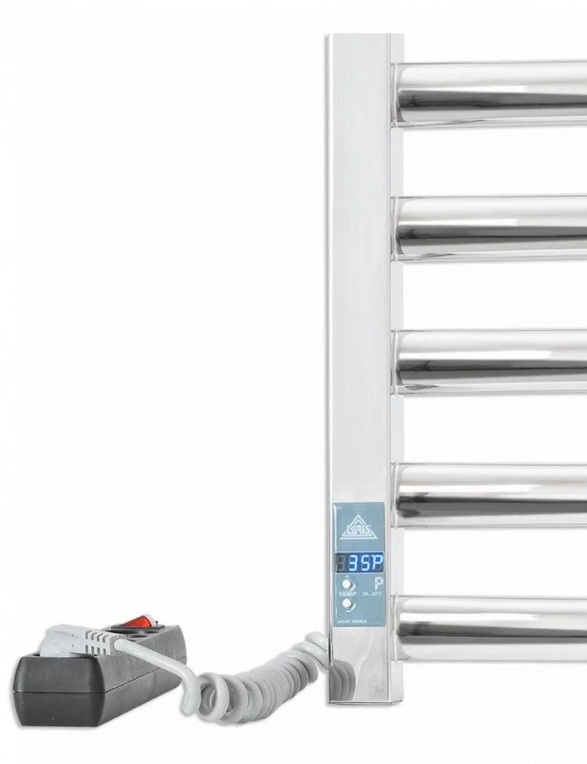 Керування нагрівом здійснюється за допомогою мікропроцесорного термоконтролера з кнопковим управлінням, розташованим на стійці, що дозволяє задавати температуру та програмувати роботу за добовим або тижневим циклом. Термодатчик контролює температуру поверхні, запобігаючи перегріву. Завдяки «сухому» ТЕНу, полотенцесушитель споживає менше енергії та може бути змонтований у будь-якому положенні, на відміну від моделей з «мокрим» ТЕНом.