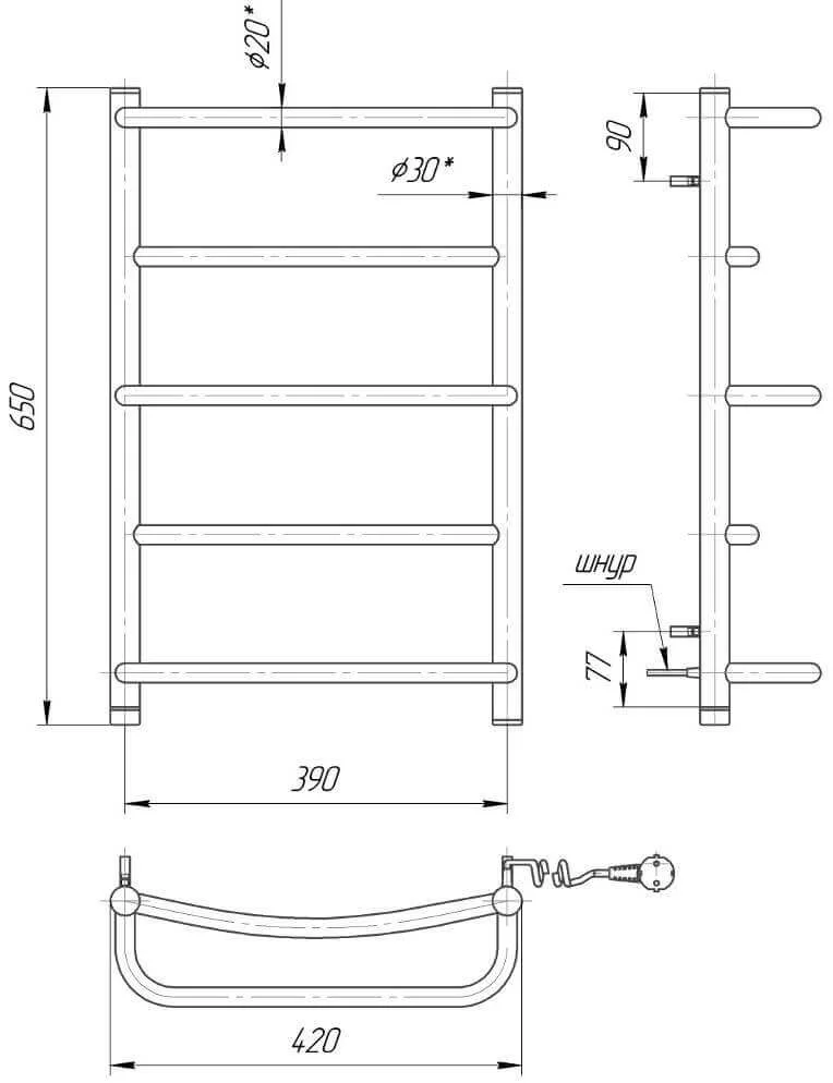 - Компактні розміри: З висотою 660 мм та шириною 420 мм, рушникосушка не займає багато місця, що є перевагою для невеликих приміщень.
