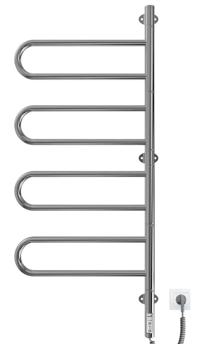 Рушникосушка обладнана вбудованим таймером, що дозволяє програмувати час нагріву на 3 або 6 годин, а також перемикати пристрій у режим постійного нагріву. Це забезпечує гнучкість у використанні та сприяє економії електроенергії. Конструкція моделі включає 4 ребра, що забезпечують достатню площу для сушіння.