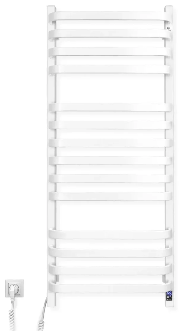 Модель виготовлена з емальованої сталі, що забезпечує її міцність, довговічність та стійкість до корозії в умовах підвищеної вологості. Теплова потужність рушникосушки становить 348 Вт, а робоча температура підтримується на рівні +50 °C +/- 5 °C. Особливістю є сенсорне керування одним дотиком та наявність таймера з програмуванням, що дозволяє оптимізувати споживання енергії та налаштувати роботу пристрою під індивідуальні потреби. Ступінь захисту IP44 гарантує безпечну експлуатацію у ванних кімнатах.