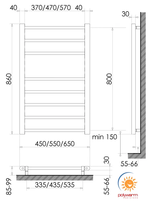 Електрична рушникосушка Polywarm Kraft ER 8/65 сухого типу забезпечує автономний обігрів та сушіння рушників, незалежно від централізованого водопостачання чи опалювального сезону. Модель має компактні розміри (висота 860 мм, ширина 650 мм) та прямі ребра, що дозволяє інтегрувати її в обмежені простори ванних кімнат. Виріб виготовлено зі сталі з антикорозійною обробкою та подвійним полімерним покриттям.