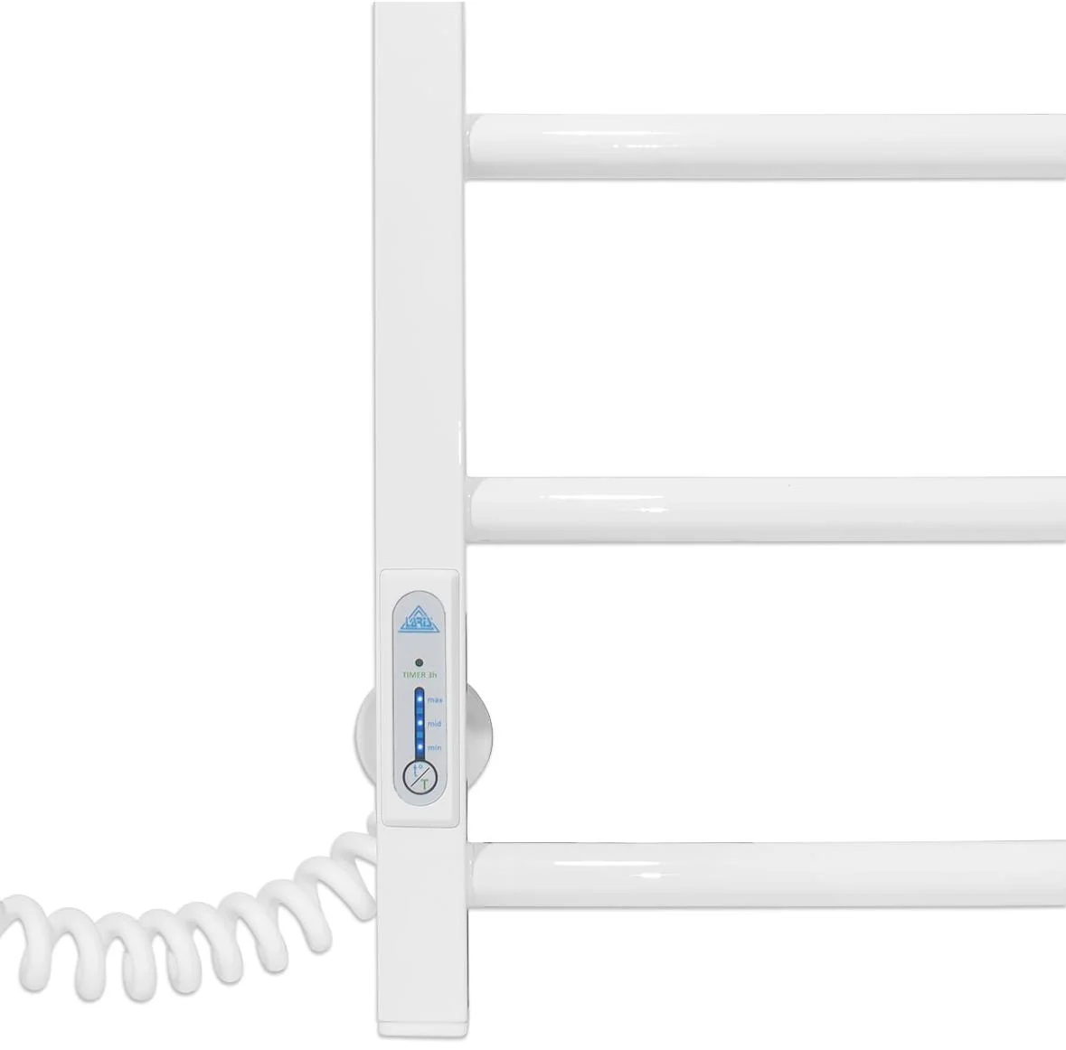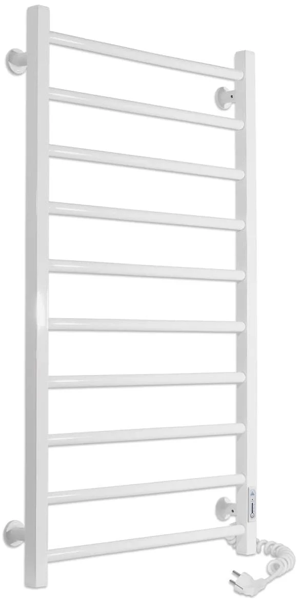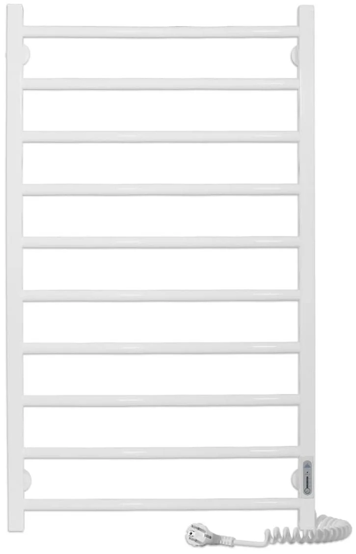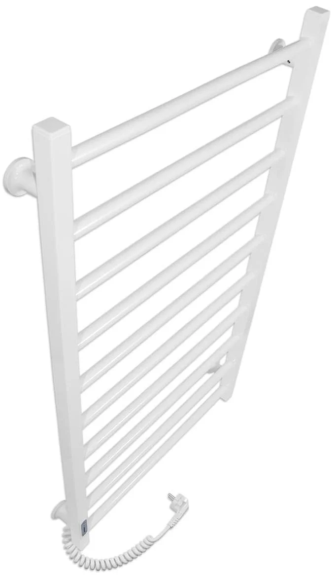 Пристрій працює від стандартної електричної мережі 220 В з частотою 50 Гц. Температура поверхні рушникосушки підтримується на рівні 50±5°C, що є оптимальним для швидкого висихання текстилю без його пошкодження. Вбудований механічний терморегулятор, розташований на стійці, дозволяє контролювати та програмувати режим роботи, оптимізуючи споживання електроенергії. Розміщення шнура живлення можливе як справа, так і зліва, що спрощує монтаж та підключення.