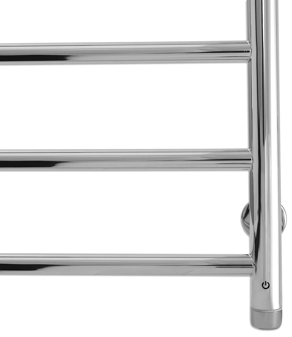 Пристрій оснащений механічним терморегулятором, розташованим на стійці, який дозволяє користувачеві встановлювати бажану температуру поверхні в діапазоні 50±5°C. Підключення до електромережі здійснюється від 220В, а розміщення шнура можливе як справа, так і зліва, що забезпечує гнучкість при монтажі. Тепловіддача рушникосушки становить 95 Вт.