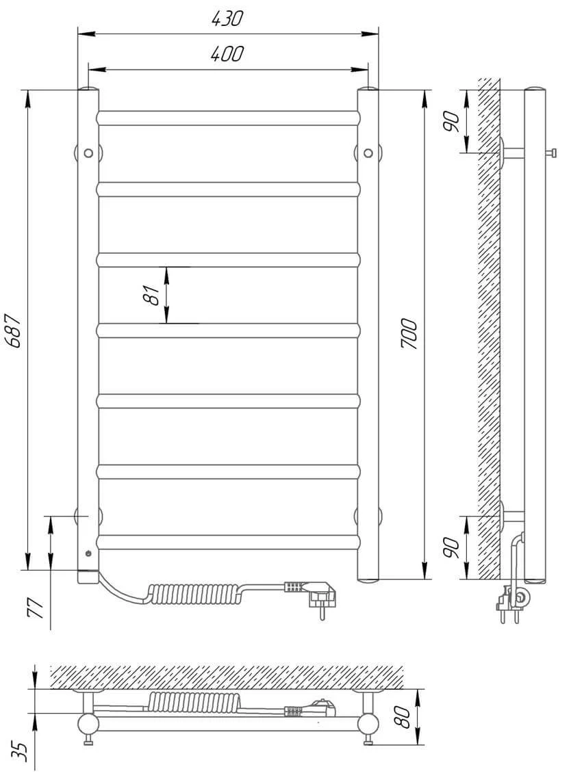 - Гнучкість монтажу: Можливість вибору сторони розміщення шнура живлення спрощує встановлення рушникосушки відповідно до особливостей інтер'єру ванної кімнати.