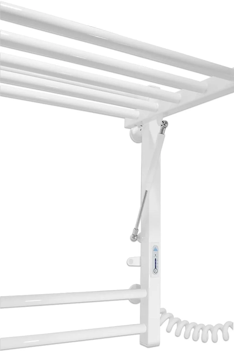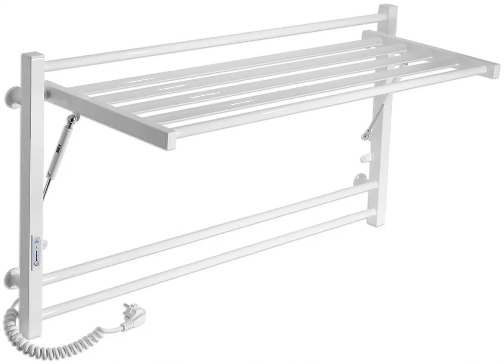 Електрична рушникосушка Laris Астор ЧК8 1000 х 500 з механічним терморегулятором забезпечує ефективне сушіння рушників та обігрів ванної кімнати. Її конструктивною особливістю є наявність регульованої полиці, яка легко складається та розкладається завдяки вбудованим газовим амортизаторам, що дозволяє оптимізувати простір.