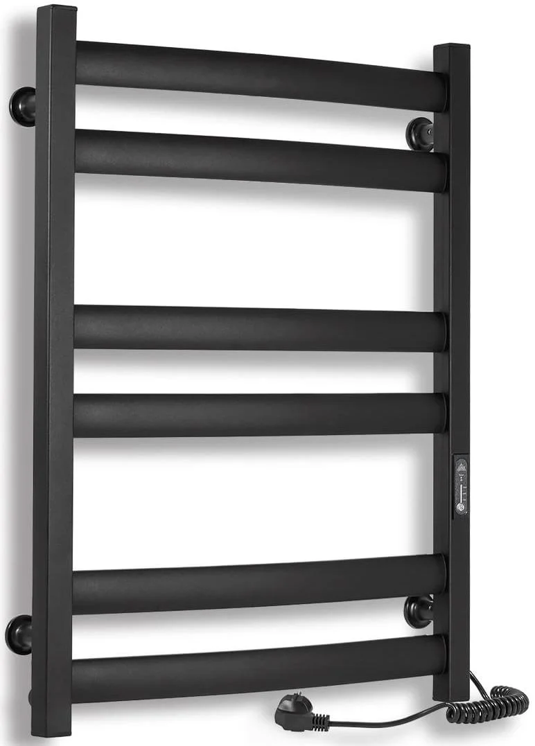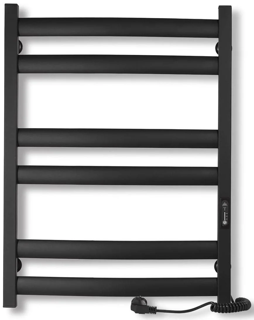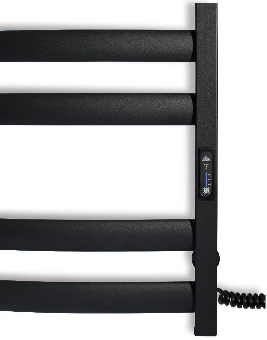 Особливістю моделі є програмований терморегулятор, розташований на стійці, який дозволяє точно контролювати температуру поверхні виробу в діапазоні 50±5°C. Розміщення шнура живлення можливе зліва або справа, що спрощує підключення до електромережі. У комплект постачання входить рушникосушка, кріплення (4 шт), шестигранний ключ та паспорт.