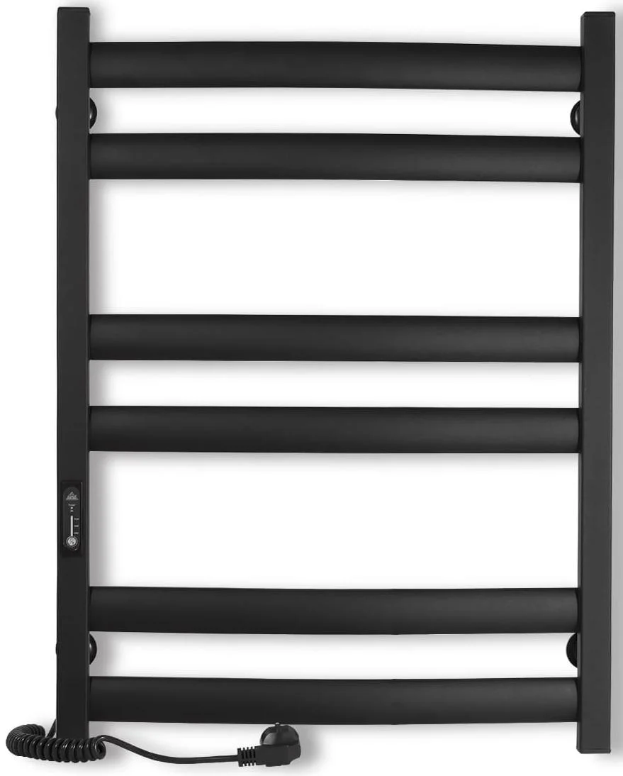 Поверхня рушникосушки покрита чорною порошковою фарбою RAL 9005 з глянцевим ПЕ-ефектом, що надає виробу естетичного вигляду та додаткового захисту. Конструкція включає стійку квадратного профілю 30х30 мм товщиною 1.5 мм та перемички овальної форми 32х18 мм товщиною 1.5 мм. Пристрій працює від напруги 220В з частотою 50Гц, забезпечуючи тепловіддачу 175 Вт.