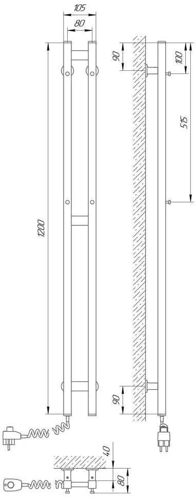 Пристрій працює від мережі 220В/50Гц, споживаючи 81 Вт електроенергії. Робоча температура поверхні рушникосушки становить 50±5°C, що є оптимальним для безпечного та ефективного використання. Модель оснащена механічним терморегулятором, розташованим на стійці, що дозволяє користувачу контролювати рівень нагріву. Конструкція виконана з профілю 25х25 мм з товщиною стінки 1,5 мм, що гарантує міцність та довговічність.