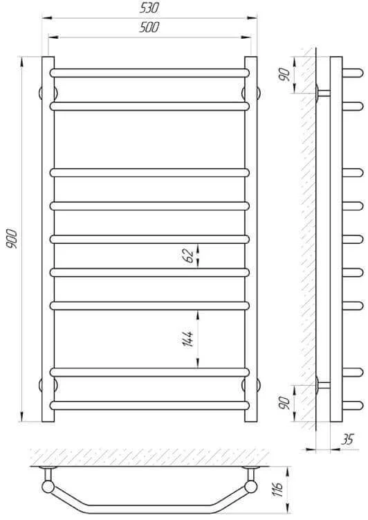 Інформація про продукт "Рушникосушка електрична Laris Вікторія П9 500 х 900"