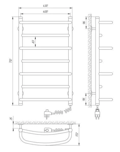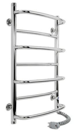 Пристрій працює від стандартної мережі 220В з частотою 50Гц, а його поверхня нагрівається до температури 50±5°C. Механічний терморегулятор, розташований на вилці, дозволяє зручно керувати роботою рушникосушки. Розміщення шнура живлення може бути як справа, так і зліва, що забезпечує гнучкість при монтажі.