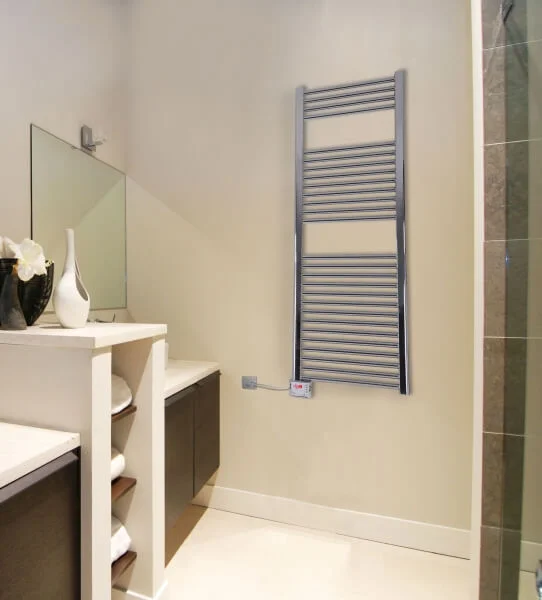 Електрична рушникосушка Mastas Vigo EHR 5016 з прямими перемичками та хромованим покриттям забезпечує ефективне сушіння рушників та обігрів невеликих ванних кімнат. З тепловою потужністю 275 Вт, ця модель швидко нагрівається, створюючи комфортні умови.