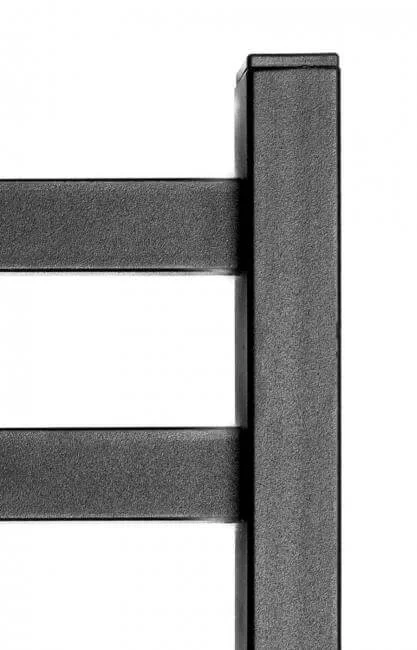 Електрична рушникосушка Navin Авангард 480 х 800 Digital чорний муар вирізняється сучасним геометричним дизайном, де колектори виконані з профільної квадратної труби 30х30 мм, а перемички – з прямокутних трубок 30х10 мм. Така конструкція надає виробу монументальності та чіткості форм.