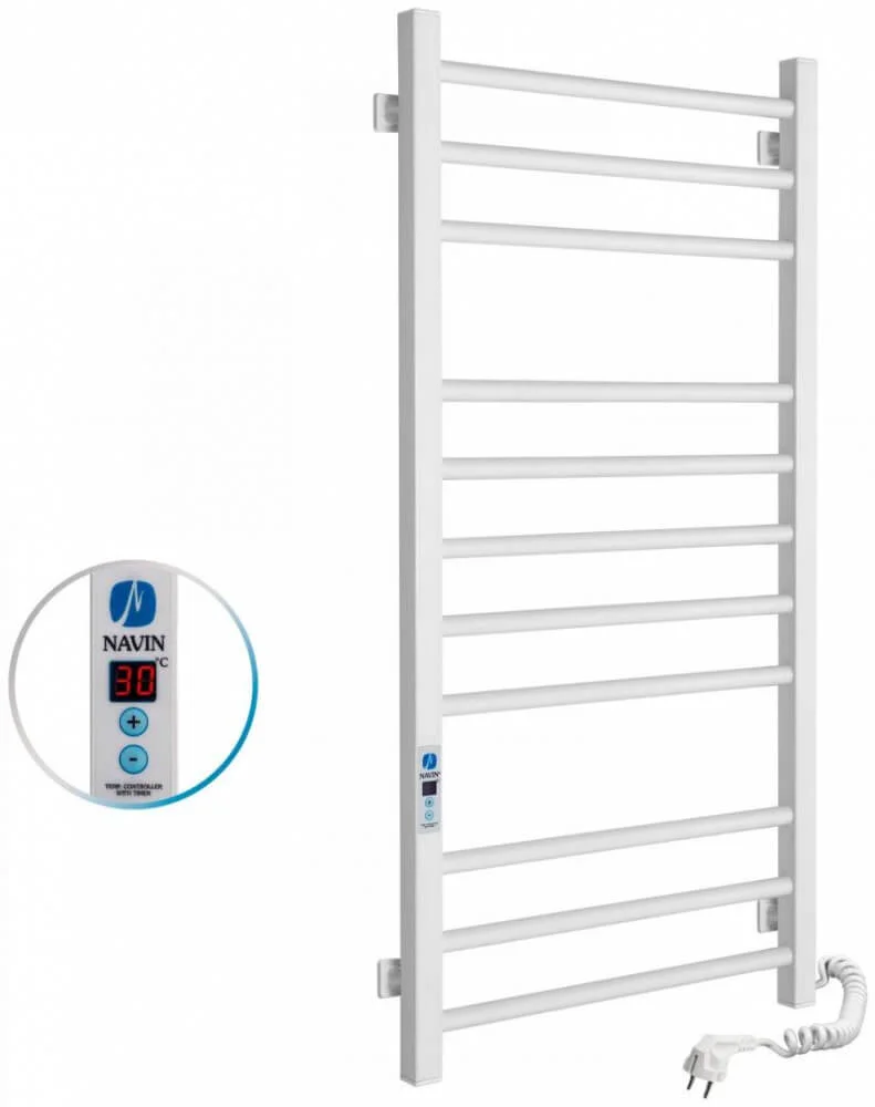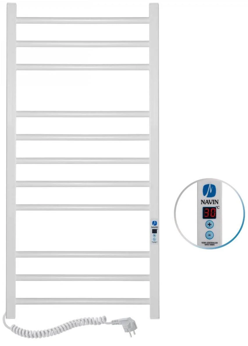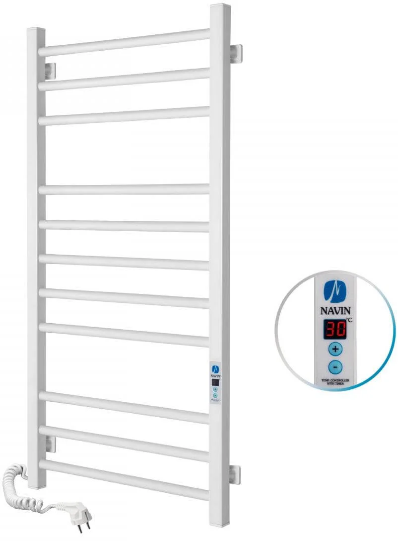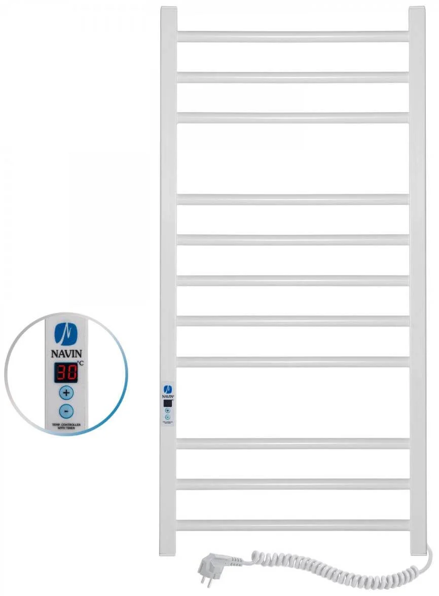 Модель оснащена високотехнологічним саморегульованим нагрівальним кабелем власного виробництва Navin, який вирізняється високою надійністю та ефективністю. Вбудований блок керування Digital дозволяє точно регулювати потужність рушникосушки та використовувати функцію таймера для програмування часу роботи. Кнопка увімкнення з індикаторною підсвіткою розташована безпосередньо на виробі, що забезпечує зручність керування.