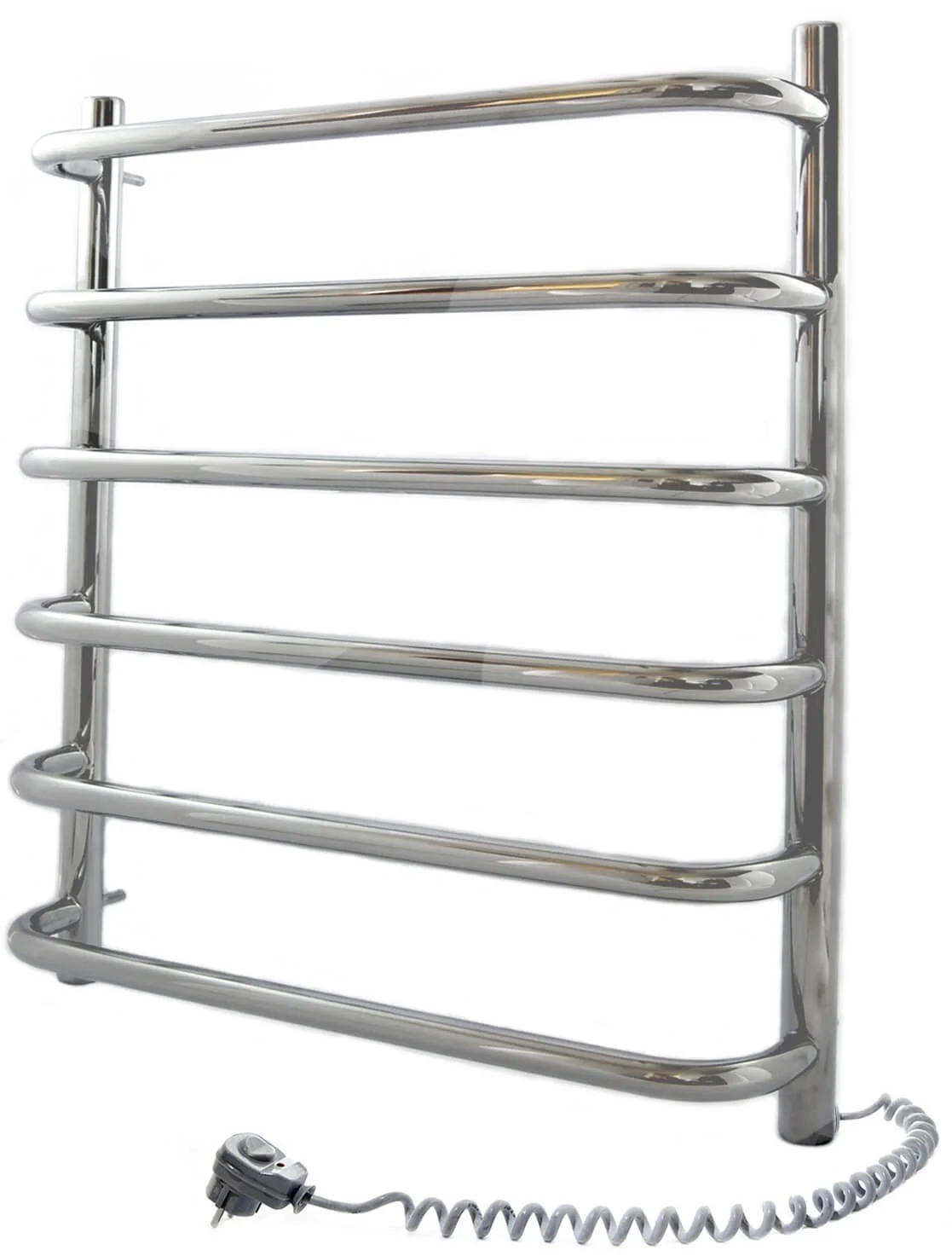 Електрична рушникосушка Navin Симфонія, виконана у формі драбини з нержавіючої сталі, забезпечує ефективне сушіння рушників та обігрів ванної кімнати. Завдяки електричному живленню, пристрій не залежить від системи центрального опалення, що дозволяє використовувати його цілий рік.