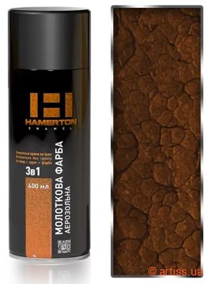 Аерозольна фарба Hamerton-520 Коричнева глянцева – інноваційна фарба на основі акрилових смол не лише швидко сохне, утворюючи міцну плівку, але й надає поверхні неповторного молоткового ефекту, що майстерно приховує дрібні нерівності.