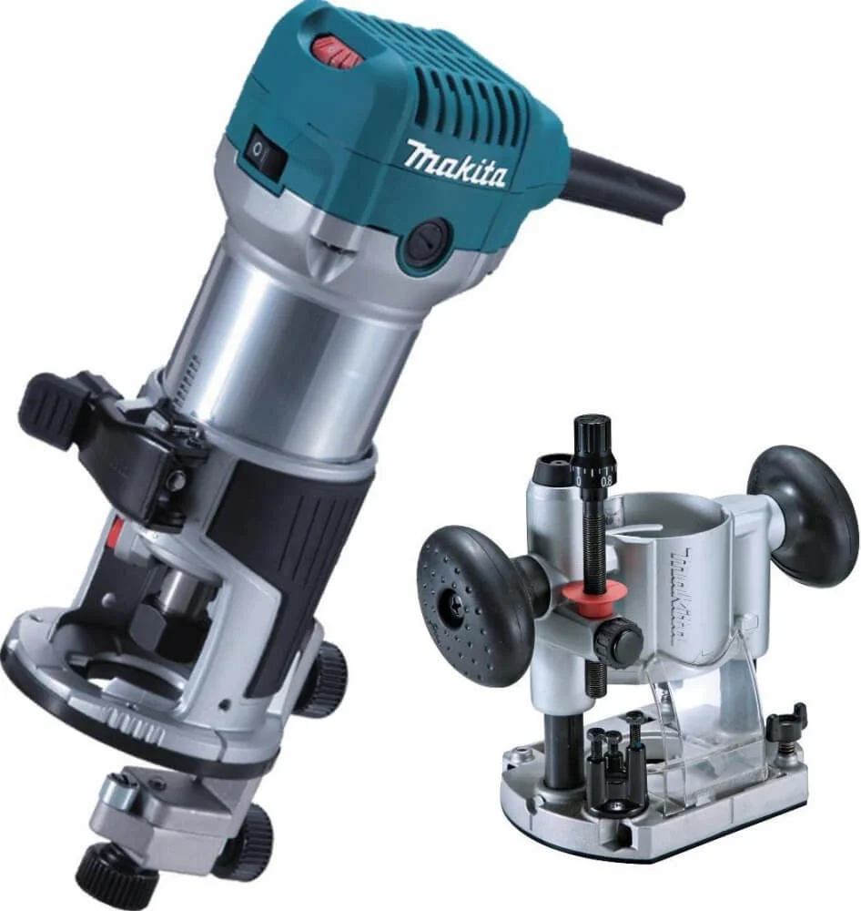 Особливістю моделі є наявність трьох змінних основ у комплекті: занурювальної, похилої та фіксованої (прямої направляючої). Це значно розширює функціонал фрезера, дозволяючи виконувати копіювальні роботи, вибірку пазів глибиною до 35 мм та зняття фасок під кутом до 45°.