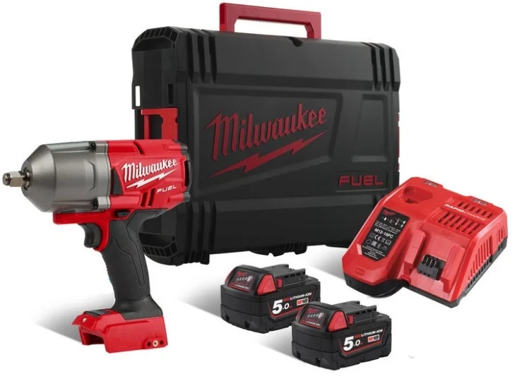 Високомоментний акумуляторний гайковерт Milwaukee M18 FHIWF12-502X з посадковим квадратом 1/2" та фрикційним кільцем забезпечує крутний момент затяжки до 1356 Нм у компактному корпусі довжиною 213 мм. Це дозволяє ефективно працювати у важкодоступних місцях, де потрібна значна потужність. Інструмент оснащений безщітковим двигуном POWERSTATE™, який гарантує підвищену ефективність та тривалий термін служби.