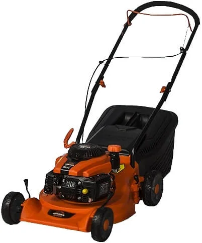 - Ергономічна конструкція: Складна та регульована по висоті рукоятка з прогумованим покриттям забезпечує комфортну роботу, легке зберігання та зручне транспортування газонокосарки.