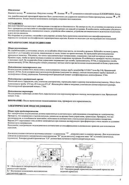 - Безпека та сумісність: Клапан має клас захисту IP24, працює з газами I-III сімейства та розрахований на під'єднання термопари через роз'єм М9х1.