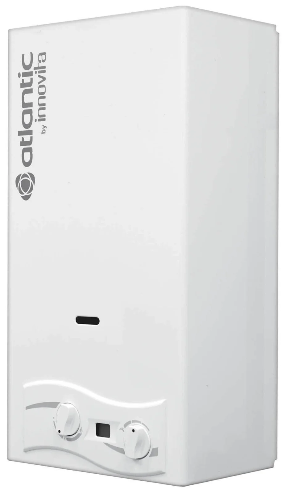 Газовий проточний водонагрівач Atlantic by Innovita GV 11iD з продуктивністю 10 л/хв призначений для миттєвого нагріву води для побутових потреб у квартирах та котеджах. Пристрій оснащений системою електророзпалу від батарейок, що забезпечує автоматичне запалювання пальника без постійно палаючого запального полум'я, тим самим економлячи газ. Відпрацьовані гази ефективно відводяться через димохід, забезпечуючи безпечну експлуатацію.