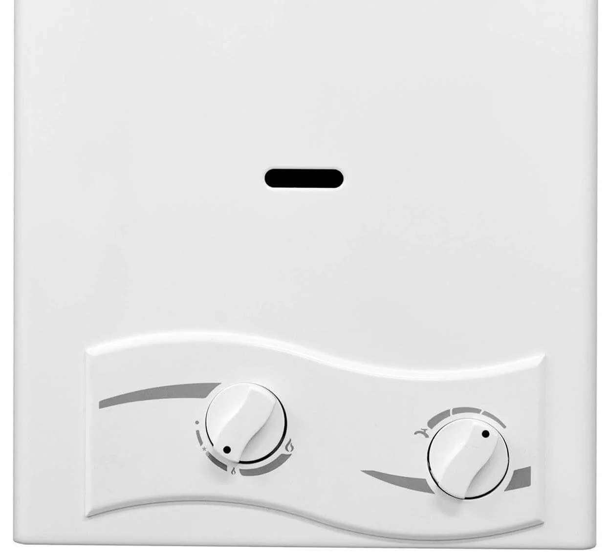 - Зручне механічне керування: Ручки регулювання газу та протоку води на передній панелі дозволяють точно налаштувати бажану температуру води в діапазоні від 25°C до 50°C.