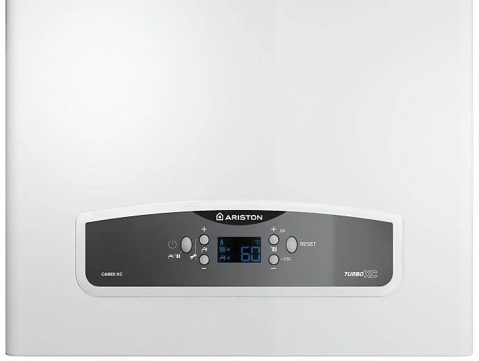 Настінний двоконтурний газовий котел Ariston CARES XC 24 FF NG потужністю 24 кВт призначений для опалення приміщень площею до 240 м² та забезпечення гарячою водою. Модель оснащена закритою камерою згоряння, що дозволяє встановлювати її без необхідності підключення до традиційного димоходу, використовуючи коаксіальний димохід 60/100 мм. Основний теплообмінник виготовлений з міді, а теплообмінник ГВП – з нержавіючої сталі, що гарантує високу ефективність та довговічність.