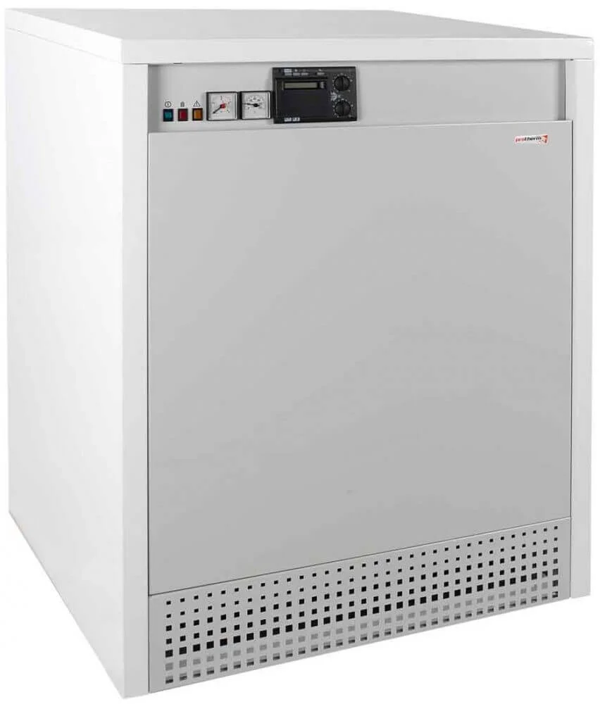 Цей підлоговий газовий котел Protherm Гризли KLO 85 кВт є оптимальним вибором для систем опалення із закритою циркуляцією теплоносія. Він підходить для встановлення в котельнях житлових, комерційних або виробничих приміщень, де потрібна висока потужність та надійність. Завдяки своїм характеристикам та функціям, котел ефективно працює в умовах зниженого тиску газу та води, що робить його адаптованим до різних експлуатаційних умов.