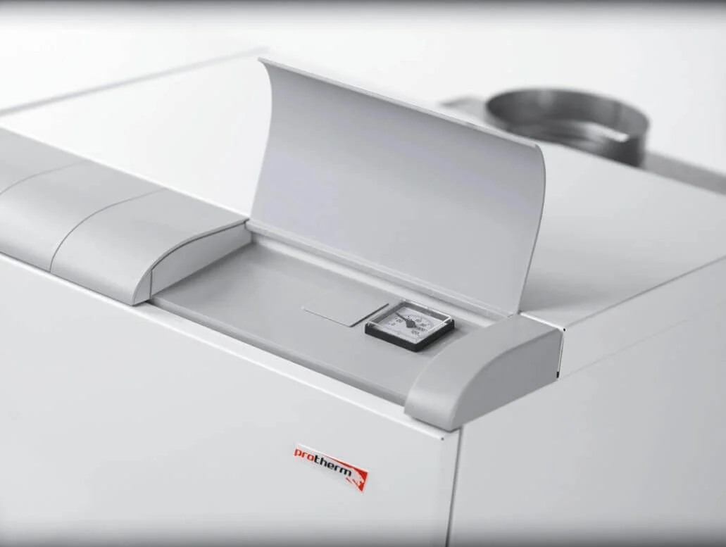 Опалювальний пристрій Protherm Ведмідь КLOм 50 кВт оснащений секційним чавунним теплообмінником, що забезпечує високу стійкість до корозії та тривалий термін служби. Ця конструктивна особливість сприяє ефективному накопиченню та рівномірній передачі тепла в систему опалення, що робить його надійним рішенням для обігріву приміщень площею до 500 м².
