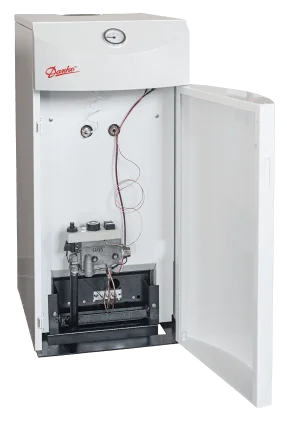 - Компактні розміри: Зменшені габарити та можливість вертикального підключення до димоходу спрощують інтеграцію котла в обмежений простір.