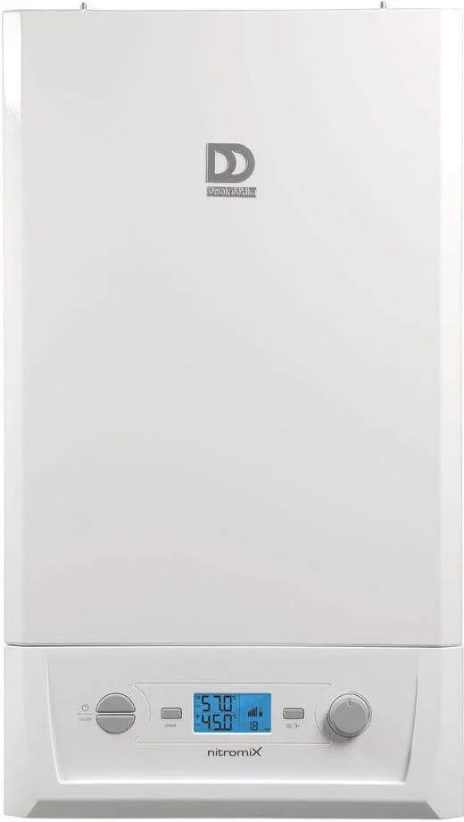 Модель оснащена закритою камерою згоряння та примусовим відведенням продуктів згоряння, що дозволяє встановлювати її в приміщеннях без стаціонарного димоходу, використовуючи коаксіальний димохід. Електронна система управління з РК-дисплеєм забезпечує зручний контроль за параметрами роботи, включаючи температуру теплоносія, тиск води та діагностику можливих помилок. Вбудований таймер дозволяє програмувати режими роботи, оптимізуючи споживання енергії. Котел Demrad Nitromix P 24 кВт демонструє стабільну роботу навіть за умов низького тиску газу та перепадів напруги в електромережі, що робить його адаптованим до українських експлуатаційних умов. Мінімальна потужність становить 6.7 кВт, а номінальна витрата газу — 2.78 м³/год.