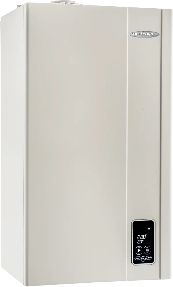 Газовий котел Nova Florida Virgo CTFS 25.5 кВт є двоконтурним настінним агрегатом із закритою камерою згоряння та примусовою тягою, призначеним для ефективного опалення приміщень та миттєвого приготування гарячої води. Його конструкція включає два роздільні теплообмінники: первинний, виготовлений з міді, забезпечує високу теплопровідність та довговічність, а вторинний пластинчастий теплообмінник з нержавіючої сталі на 26 пластин гарантує швидке та стабільне гаряче водопостачання. З номінальною тепловою потужністю 25.5 кВт, пристрій здатен опалювати площу до 240 м², демонструючи високий коефіцієнт корисної дії до 93.0%.